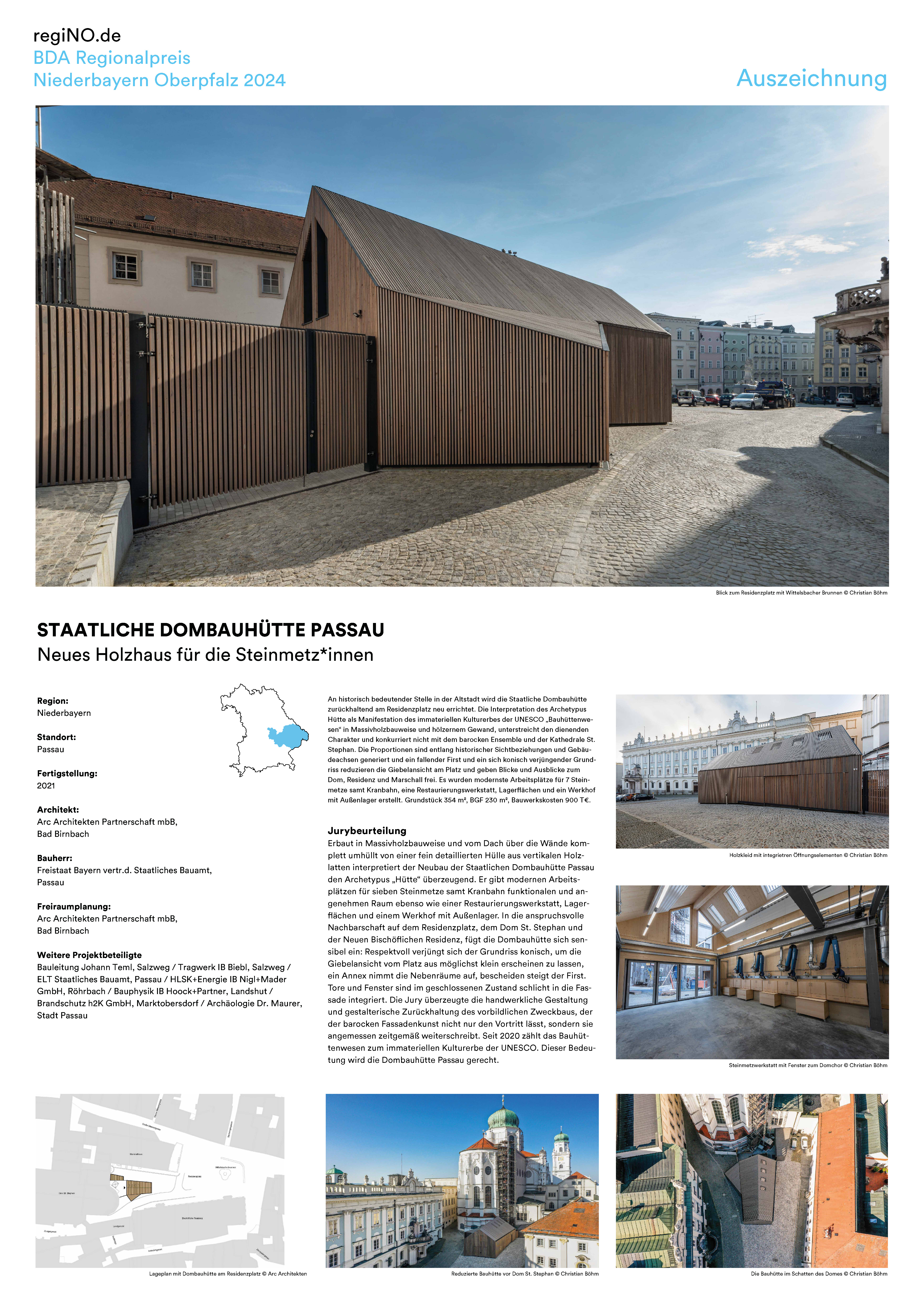 Wir freuen uns sehr mit unserem Auftraggeber dem Staatlichen Bauamt Passau und natürlich den Nutzern der Dombauhütte über diese Würdigung.