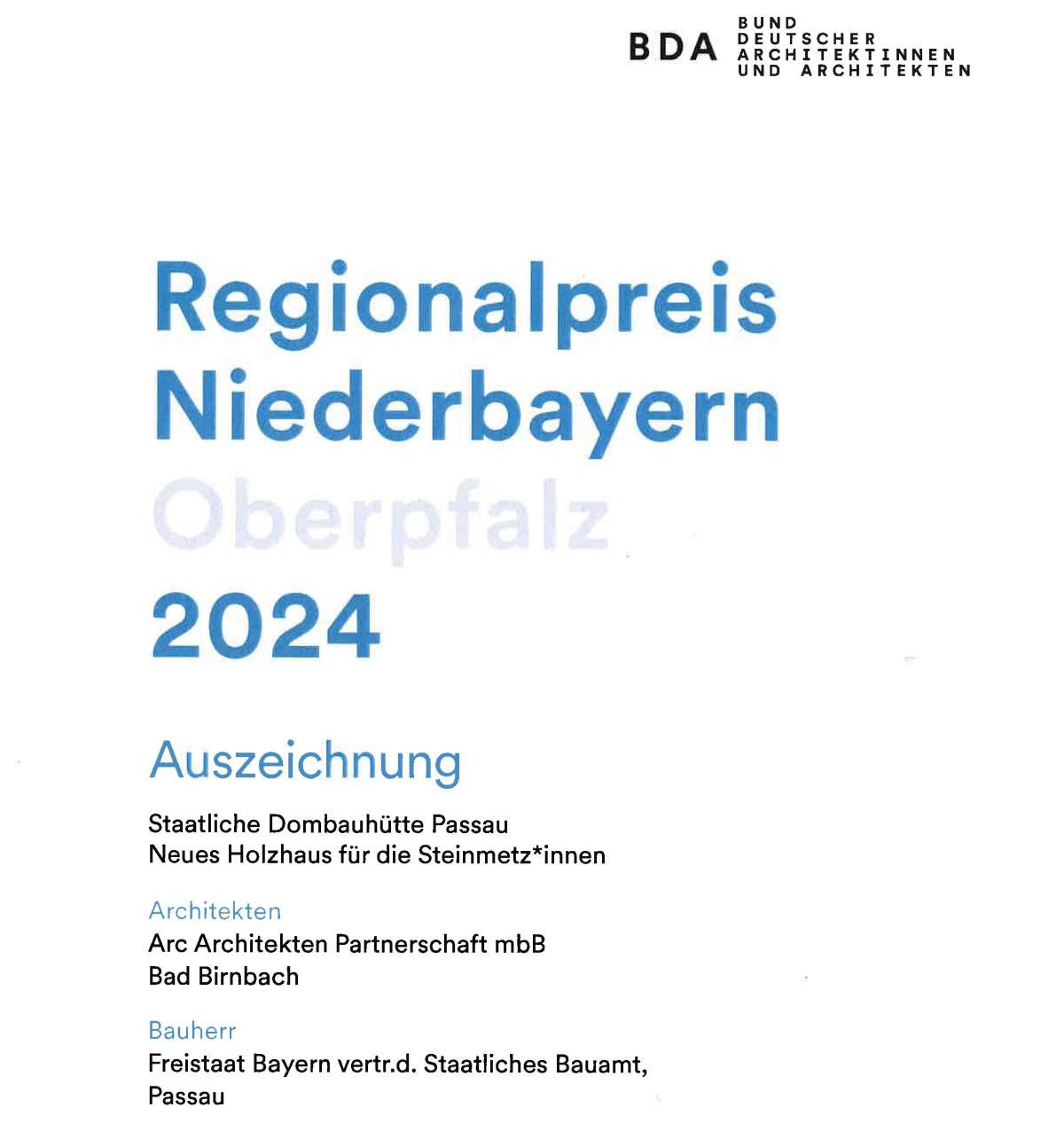 Auszeichnung BDA Regionalpreis Niederbayern/Oberpfalz 2024