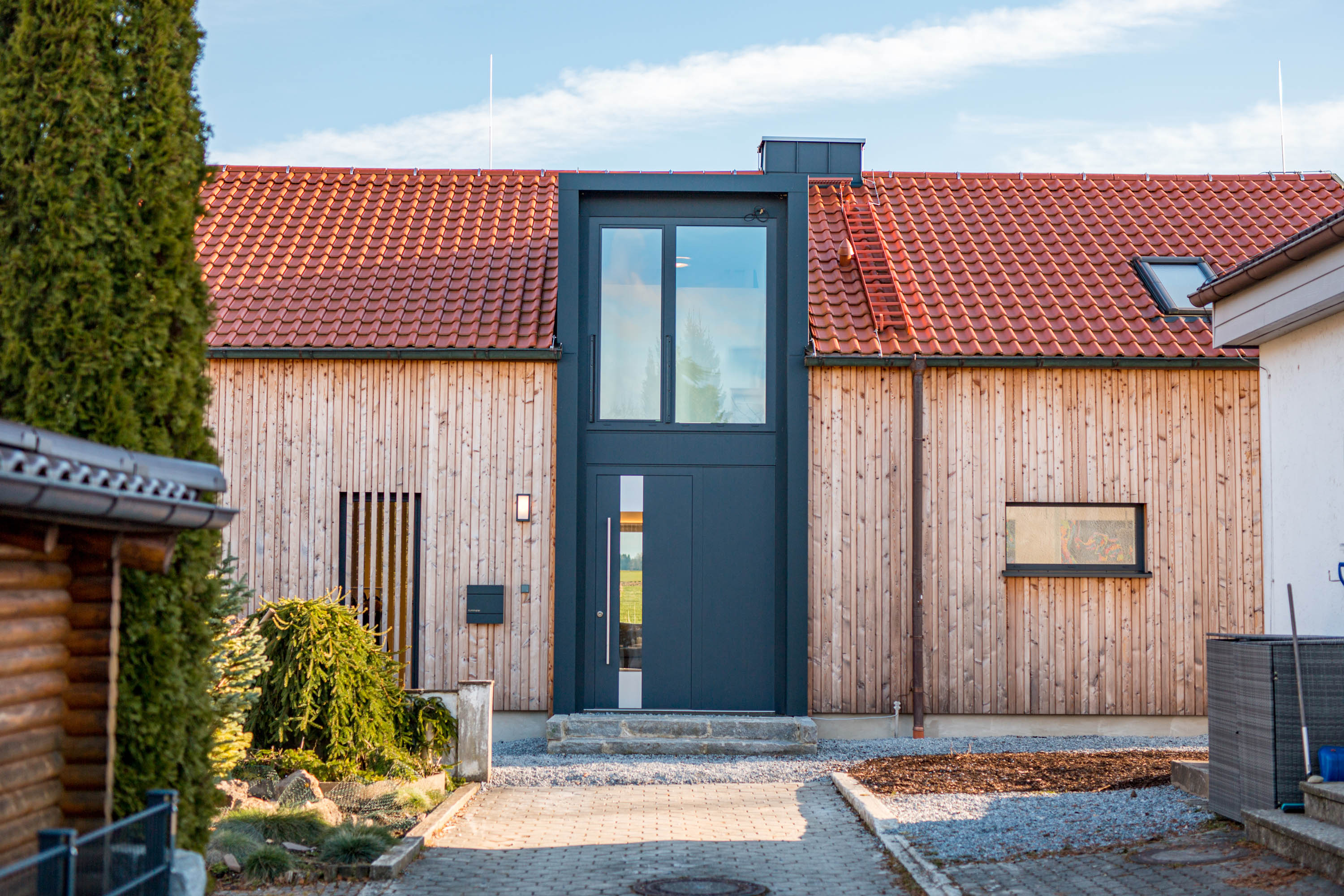 Die energetisch schlechten Mauerwerks-Außenwände wurden dick in Holzfaserdämmstoff und eine hinterlüfteten Lärchenholzschalung eingepackt. Das schwere Bestandsmauerwerk kommt als thermische Masse dem Innenraum zugute. Holz-Alu-Fenster mit Dreifachverglasung, unterseitige Dämmung der Kellerdecke und das gut gedämmte Dach vervollständigen den guten Energiestandard der Hüllfläche.